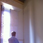 - Actuación apuntalamiento y reparación en grietas aparecidas en estancia dedicada a Biblioteca y aledañas basada en descarnado de grietas, aspiración de restos de las mismas, lavado y consolidación con resinas, inyección de resinas epoxídicas, corte radial en aspa, taladros en muros necesarios para colocación de varillas de fibra de vidrio, consolidación final con primal spray y tapado con guarnecido de yeso/cal.