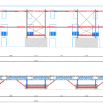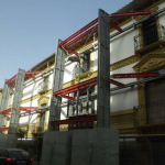 - Instalación de estructura contrapesada utilizando el sistemas de estabilizador exterior, sujetando la fachada horizontalmente con lineas de atado, fijando la fachada horizontalmente con correas y varillas pasamuros, para evitar el efecto de vuelco del muro de fachada a Lope Gisbert.