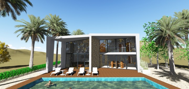 Vivienda unifamiliar proyectada sobre parcela de 500 m2 frente al mar de Aguilas. La superficie construida son 300 m2 construidos distribuidos en 2 plantas sobre rasante y 1 bajo rasante. En la cubierta se instalará mobiliario para darle uso de solarium. Arquitectura moderna y distribución libre.