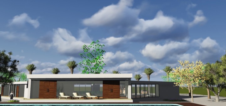 Modelo de vivienda unifamiliar de planta libre presentada por NC Arquitectura. Medidas de eficiencia energética. Estucados y hormigones. Grandes ventanales. 800 m2 construidos. Interior Alzados y planta de cubiertas