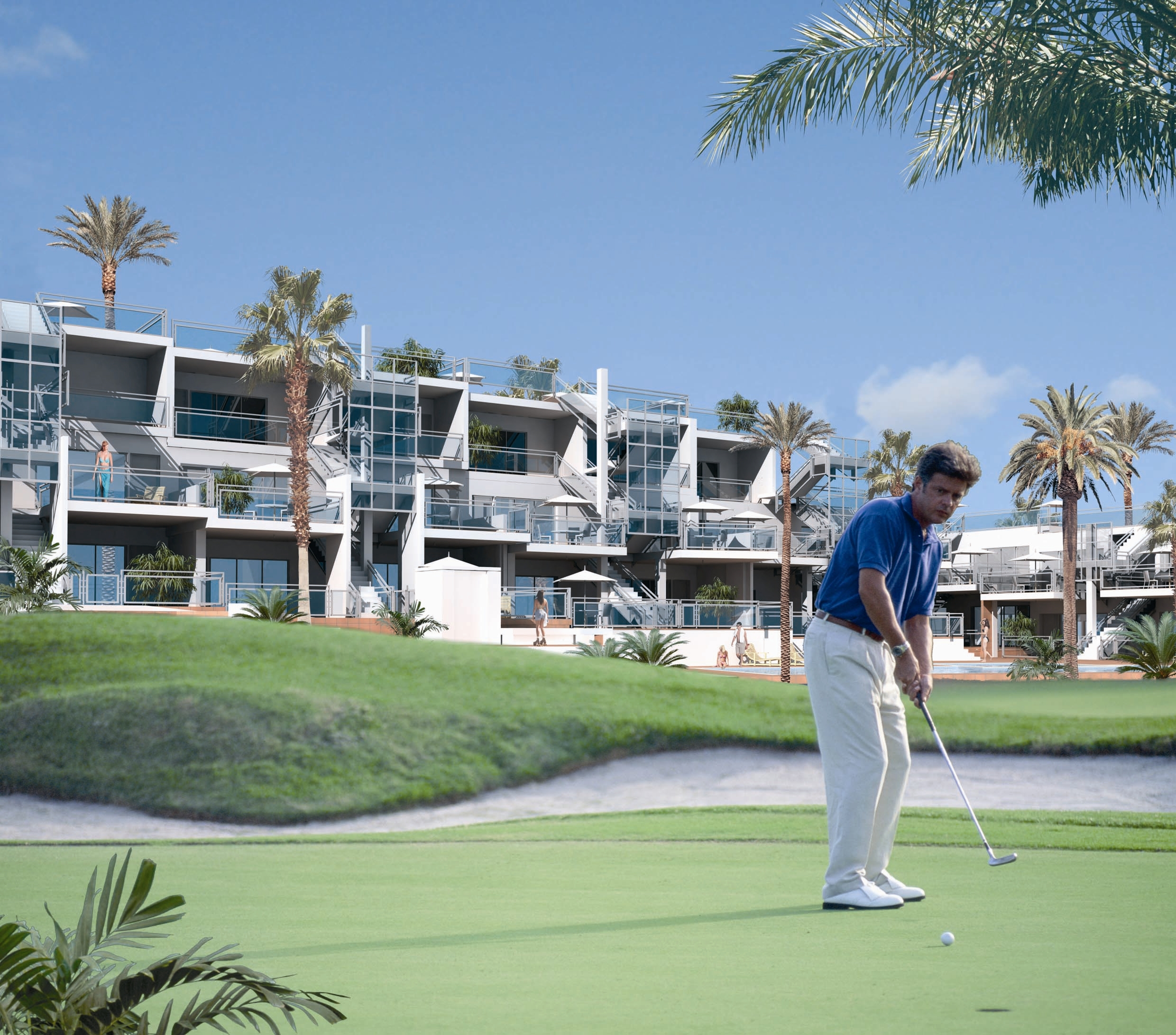 Se trata de un conjunto adaptado a las necesidades de los visitantes de la zona, junto a una gran zona de equipamientos, en la que predomina un campo de Golf de 18 Hoyos.
