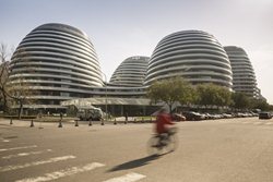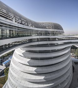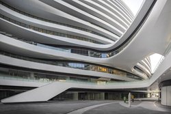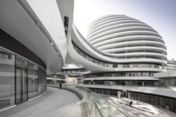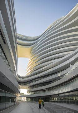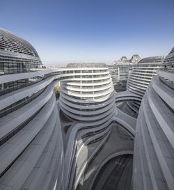 El Guangzhou Opera House, China (2010). La estructura se encuentra sobre una superficie de más de 330 mil metros cuadrados en el distrito de Dongcheng. El centro comercial se finalizó después de treinta meses de construcción. El proyecto parte del diálogo entre las formas curvas de los cuatro volúmenes independientes, con una altura máxima de 67 metros y unidos por pasarelas, que transmiten la idea de movimiento y fluidez. La distribución del conjunto se organiza en torno a grandes patios interiores que buscan la continuidad de los espacios abiertos.