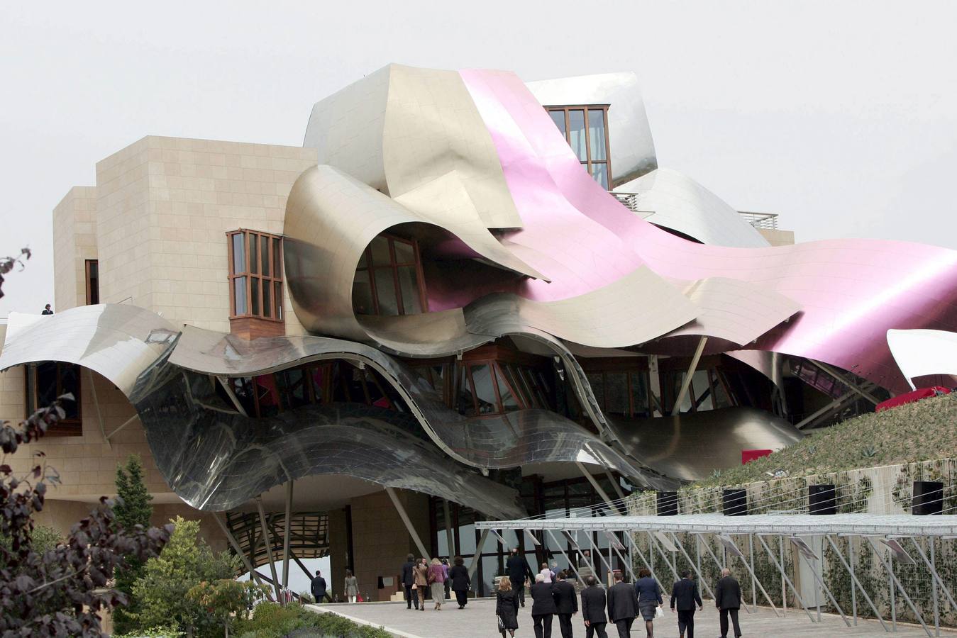 ***ACOMPAÑA TEMA FIN DE SEMANA: VINO-TURISMO*** MD. MADRID, 21/06/09.- Las cifras son todavía modestas, no más de millón y medio de personas al año, pero el enoturismo, muy extendido y consolidado en Francia e Italia, o en el californiano valle de Napa, avanza imparable en España, el mayor viñedo del mundo. En la imagen de archivo (10/10/06), una vista general del hotel Marqués del Riscal situado junto a las bodegas de Marqués del Riscal en Elciego (Alava) y creado por el arquitecto canadiense Frank Gehry. EFE/Archivo/Abel Alonso