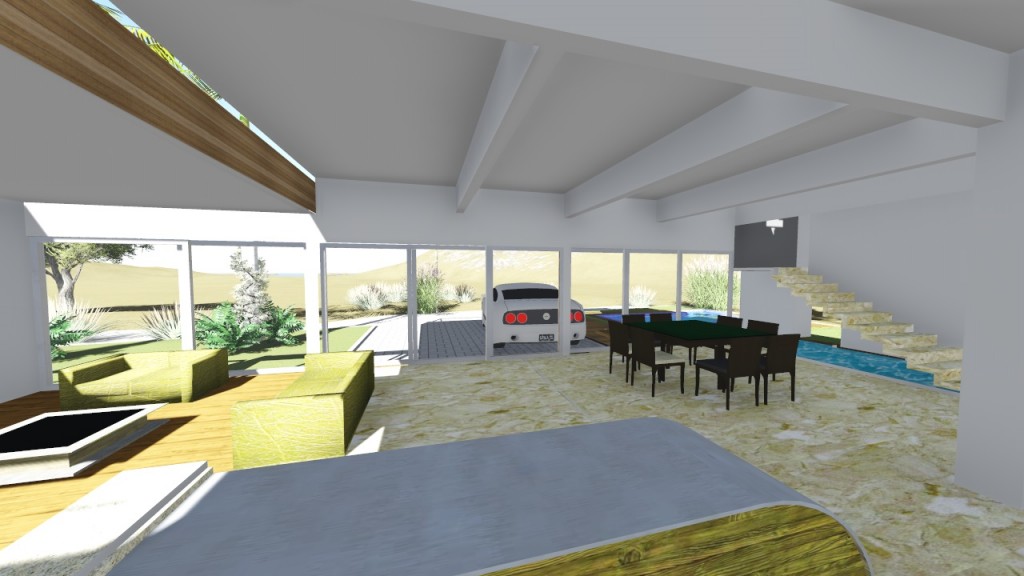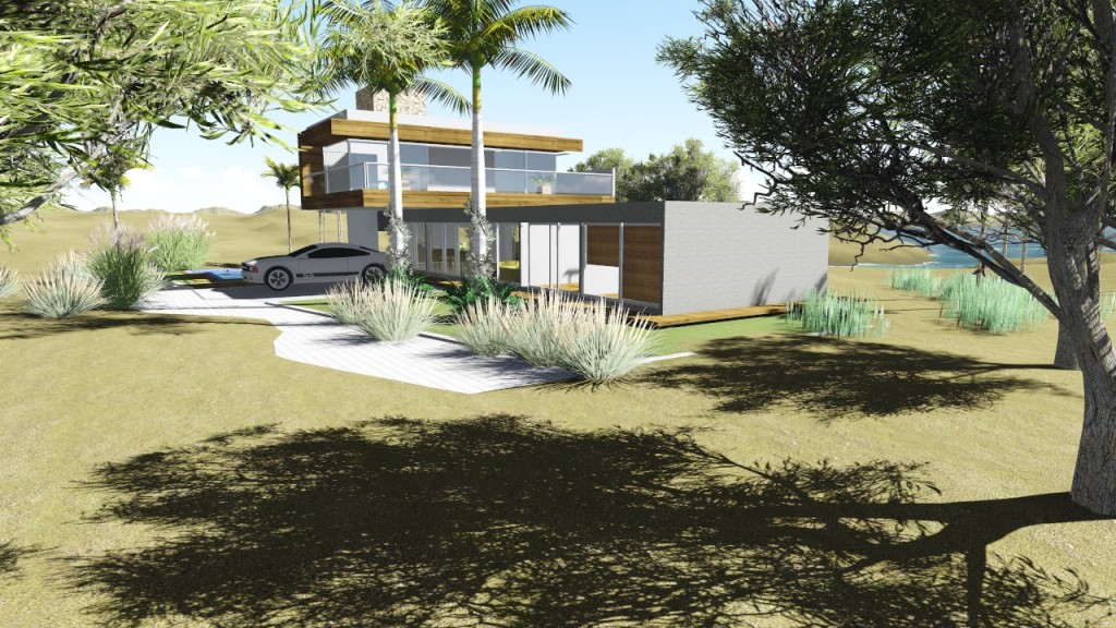 NC Arquitectura proyecta una vivienda unifamiliar de estilo moderno junto al mar. 300 m2 construidos y materiales nobles. Medidas de sostenibilidad y eficiencia energética. Interiores Alzados y Planta de cubierta