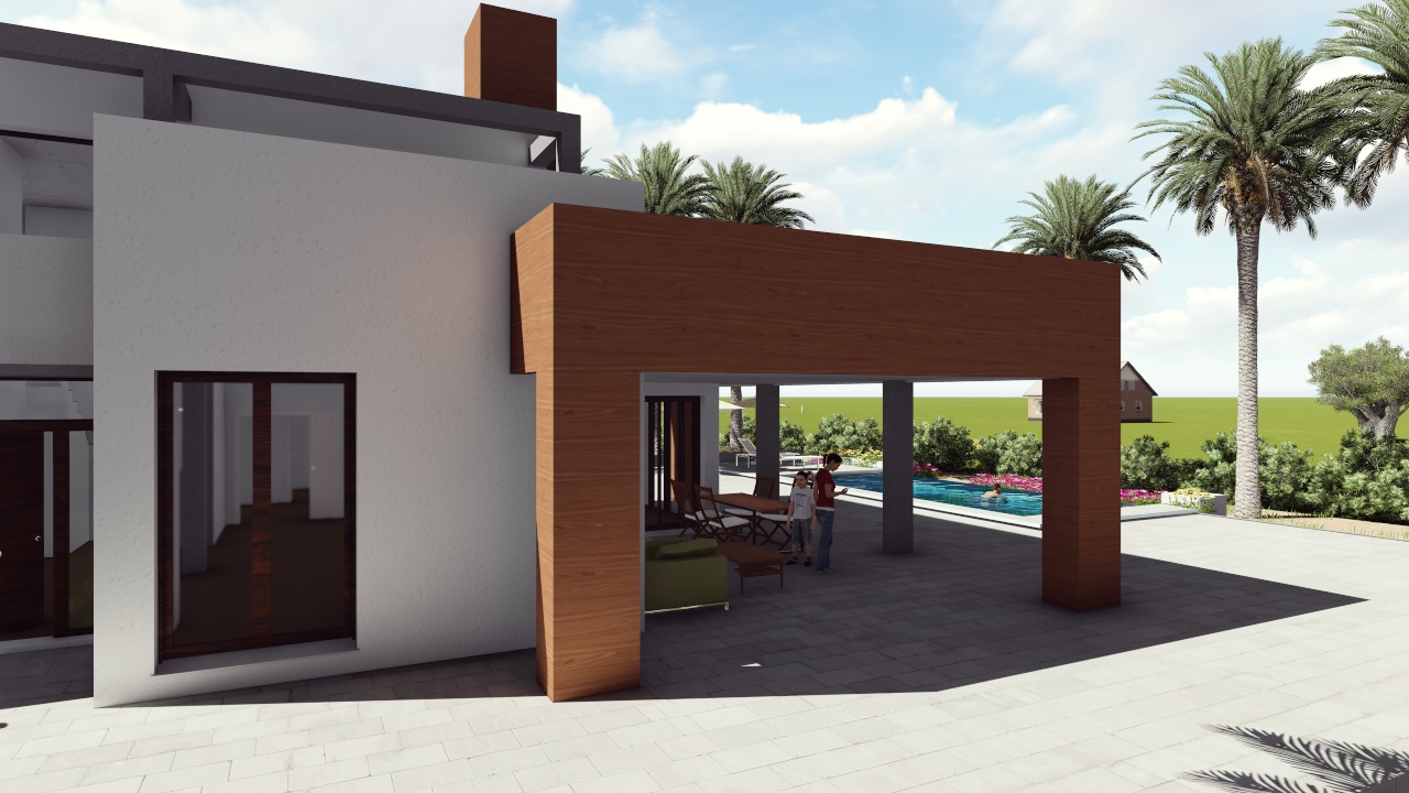 Todos sus espacios exteriores se articulan en torno a ella, de modo que ésta y su entorno se constituyen en un continuo, haciendo que la vida en ella resulte muy confortable.
